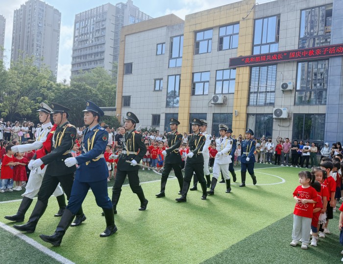 為慶祝新中國(guó)76周年華誕,弘揚(yáng)愛(ài)國(guó)主義精神,9月30日上午,我校國(guó)旗護(hù)衛(wèi)隊(duì)受邀參加倉(cāng)山區(qū)第一中心幼兒園國(guó)慶節(jié)升國(guó)旗儀式。