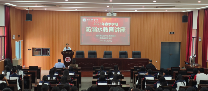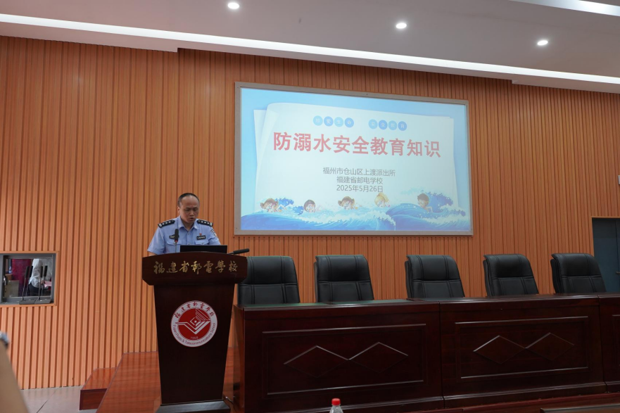 2025年5月26日下午,福建省郵電學(xué)校在學(xué)術(shù)報告廳舉辦防溺水安全教育專題講座,福州市公安局上渡派出所李華警官,校黨委委員、副校長林鵬,學(xué)生與保衛(wèi)科科長張仁美及師生代表參加。本次講座由學(xué)生與保衛(wèi)科副科長劉江峰主持。