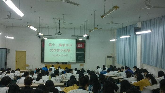 11月23日晚,我校第十二屆讀書節(jié)文學(xué)知識(shí)競(jìng)賽在第三階梯教室舉行。本次競(jìng)賽由每班選派3名選手組成代表隊(duì),采用筆試閉卷答題的形式,每班3名參賽選手的總分即為本班級(jí)的團(tuán)體競(jìng)賽分?jǐn)?shù),然后以班級(jí)的團(tuán)體競(jìng)賽分?jǐn)?shù)排列名次。來(lái)自各班的111名選手參加了競(jìng)賽。其中由三位選手陳秀平、鄧新亭、李玟組成的經(jīng)貿(mào)1404班代表隊(duì)力挫群芳,獲得第一名。