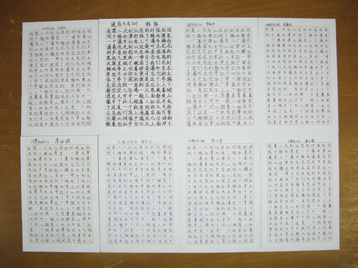 我校第十二屆讀書節(jié)經(jīng)典名篇現(xiàn)場(chǎng)硬筆書法比賽結(jié)果日前揭曉。本次書法比賽吸引了137名同學(xué)參加,比賽使用學(xué)校提供的統(tǒng)一文稿紙,書寫規(guī)定的經(jīng)典名篇。同學(xué)們書寫的作品布局合理、美觀大方、字形挺拔、筆畫流暢。