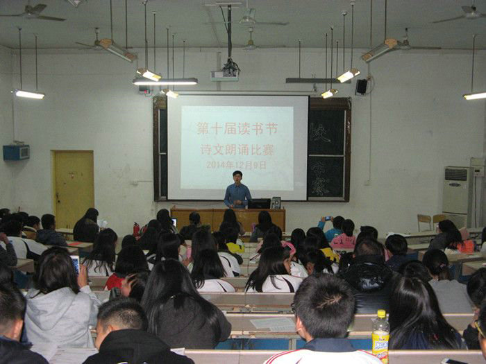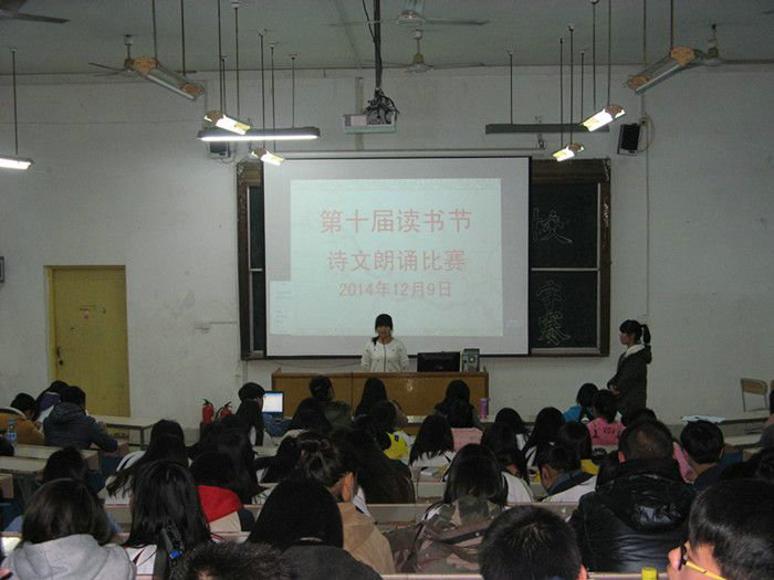 為引領同學們親近經(jīng)典、熱愛經(jīng)典,傳承中華經(jīng)典文化,我校于12月9日和12月11晚自習在第三階梯教室舉辦了第十屆讀書節(jié)經(jīng)典詩文朗誦比賽。