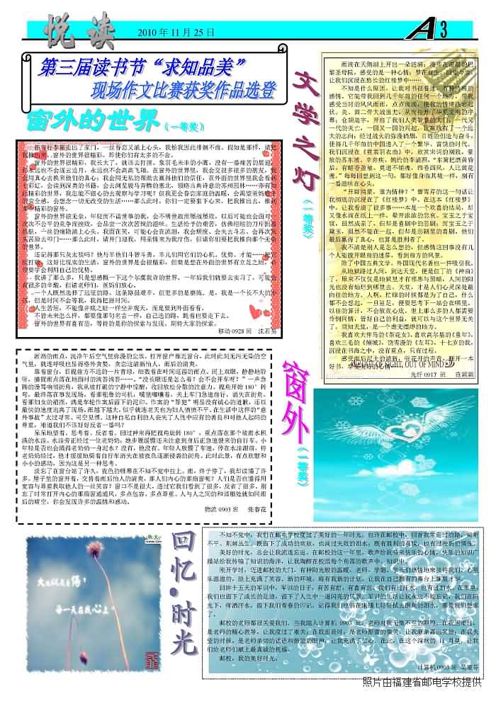 您現(xiàn)在的位置: 首頁(yè) > 德育教育 > 讀書(shū)活動(dòng)讀書(shū)活動(dòng) 《悅讀》報(bào)(第九期) 發(fā)布時(shí)間:2010-11-26 //echo 林敏;?> 來(lái)源:圖書(shū)館點(diǎn)擊: 上一篇:我校第三屆讀書(shū)節(jié)“一路書(shū)香,一路收獲”美詩(shī)文朗誦比賽落下帷幕 下一篇:我校第三屆讀書(shū)節(jié)“一語(yǔ)飄香,句句溢美”讀書(shū)感言短信創(chuàng)作比賽評(píng)選揭曉