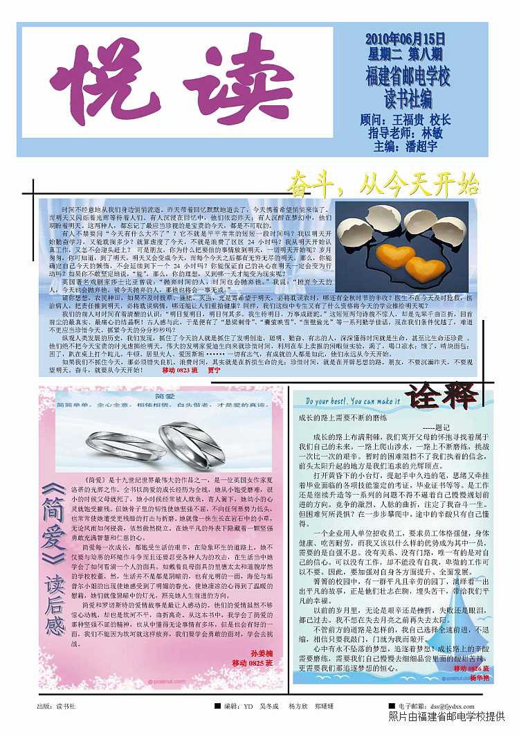 您現(xiàn)在的位置: 首頁 > 德育教育 > 讀書活動讀書活動 《悅讀》報(第八期) 發(fā)布時間:2010-06-15 //echo 林敏;?> 來源:圖書館點擊: 上一篇:圖書館“讀者園地”09級黑板報評比結(jié)果揭曉 下一篇:我校英語口語比賽圓滿結(jié)束