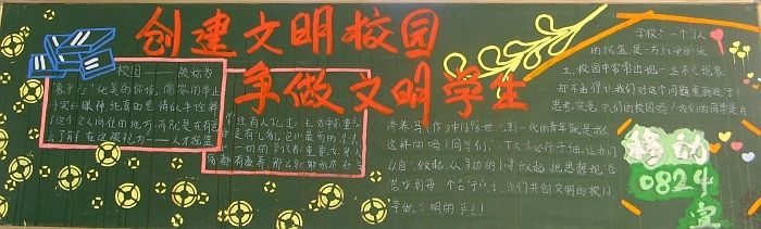 圖書館舉辦的“讀者園地”08級黑板報(bào)評比活動于近日順利完成。自上個學(xué)期開始,08級各班每周輪流到圖書館一樓大廳制作黑板報(bào)。各班黑板報(bào)主題鮮明、版面醒目、圖文并茂、設(shè)計(jì)美觀,充分展現(xiàn)了我校學(xué)生的藝術(shù)才華,令學(xué)校多了一道亮麗的風(fēng)景線。經(jīng)過評比,共有9個班級獲得了獎項(xiàng)。
