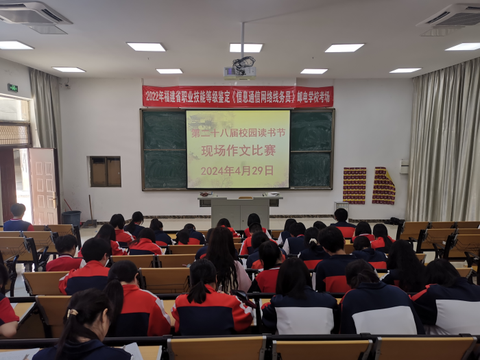 為引導(dǎo)青少年學(xué)生樹立遠(yuǎn)大志向,激發(fā)他們的愛國熱情,4月29日,我校在第一階梯教室舉行第二十八屆校園讀書節(jié)現(xiàn)場(chǎng)作文比賽,共有44名同學(xué)參加了比賽。