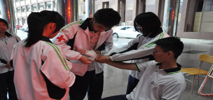 為了讓學生將急救課堂上所學的技能更熟練地應用在實際中,提高學生應對各種意外及災難所造成的身體損傷進行自救互救的能力及意識。校醫(yī)務室于2017年6月7日下午在校信息技術(shù)實訓基地一樓大廳開展自救互救演練活動,本次活動組織了通信大專1401班和通信大專1601班的同學參與各種急救技能演練,現(xiàn)場演練了心肺復蘇、暈厥及休克緊急處理、癲癇及窒息緊急處理、鼻出血緊急處理、止血帶應用、外傷緊急處理、燒燙傷緊急處理及扭傷緊急處理等各種急救技能。同學們沉著應對,利用課堂上所學的急救技術(shù)熟練地處理各種意外傷害,演練達到預期效果,獲得了在場師生們的一致好評。