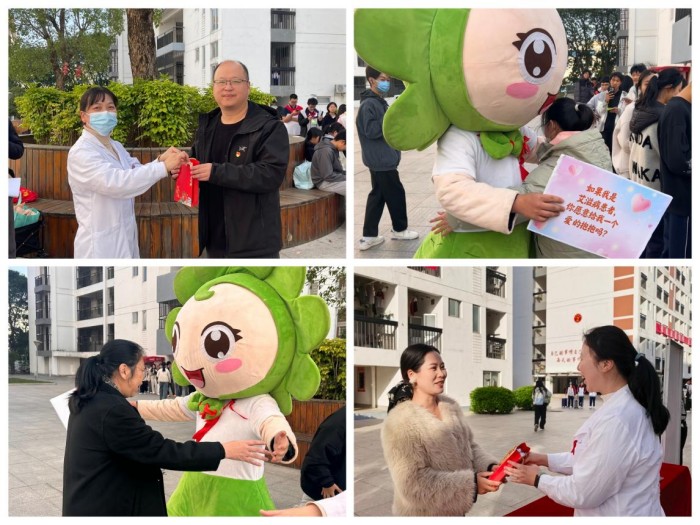 11月28日下午,校醫(yī)務(wù)室在學(xué)生公寓廣場(chǎng)上舉行2025年世界艾滋病日主題活動(dòng)暨體驗(yàn)式生命教育活動(dòng),通過發(fā)放防艾宣傳冊(cè)、佩戴紅絲帶徽章、現(xiàn)場(chǎng)義診咨詢、向教職工發(fā)放計(jì)生用品等活動(dòng)向師生們普及防艾知識(shí),還設(shè)置了“艾”的大富翁、“艾”不迷路等活動(dòng)環(huán)節(jié),將艾滋病相關(guān)知識(shí)與游戲結(jié)合在一起,寓教于樂,師生們踴躍報(bào)名。蘇嶸校長(zhǎng)、林則烽副校長(zhǎng)及總務(wù)科黨支部也加入到活動(dòng)中來。此次還請(qǐng)到了福州市防艾吉祥物“福小艾”,手舉“如果我是艾滋病患者,你愿意給我一個(gè)愛的抱抱嗎”手牌,現(xiàn)場(chǎng)師生紛紛上前與之擁抱,氣氛熱烈。
