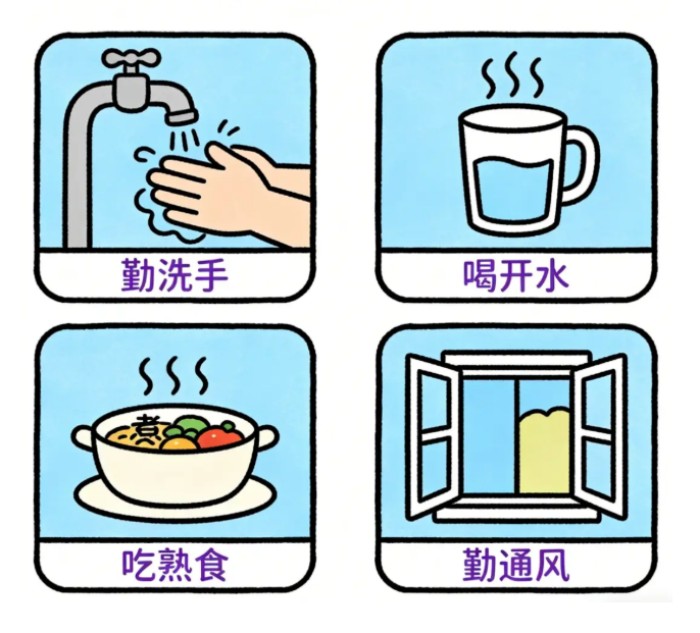 5. 避免傳播:不與家人共用個(gè)人物品,如廁后徹底消毒。