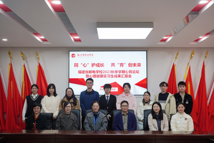 2024年1月4日下午,我校召開2023年秋季學(xué)期心育論壇暨心理健康實(shí)習(xí)生成果匯報會。出席會議的有福建醫(yī)科大學(xué)代表,健康教育學(xué)院黨委書記林賢浩,應(yīng)用心理學(xué)系主任、研究生帶隊(duì)教師廖美玲,帶隊(duì)教師林麗華及5名醫(yī)大本碩實(shí)習(xí)生;福建省郵電學(xué)校代表,副校長陳霓,公共課程教學(xué)部主任陳蔚,公共課程教學(xué)部副主任林曉益及學(xué)生發(fā)展中心全體教師。會議由福郵校公共課程教學(xué)部主任陳蔚主持。