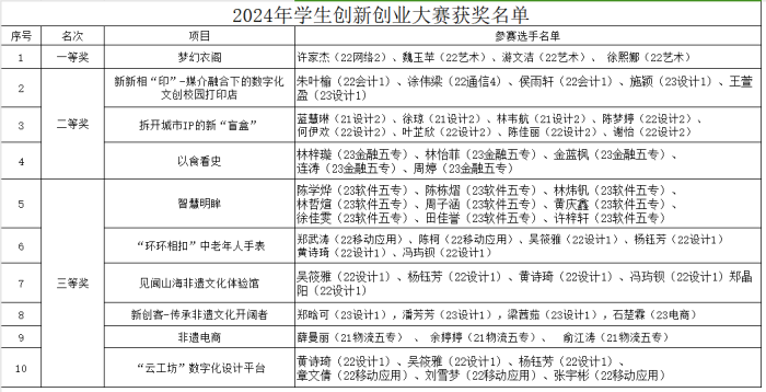 經(jīng)激烈角逐,《夢(mèng)幻衣閣》獲一等獎(jiǎng),《新新相“印”-媒介融合下的數(shù)字化文創(chuàng)校園打印店》《解鎖城市IP的新“盲盒”》《以食看史》等3個(gè)項(xiàng)目獲得二等獎(jiǎng),《智慧明眸》《“環(huán)環(huán)相扣”中老年人手表》《見(jiàn)聞山海非遺文化體驗(yàn)館》《新創(chuàng)客-傳承非遺文化開闊者》《非遺電商》《“云工坊”數(shù)字化設(shè)計(jì)平臺(tái)》等6個(gè)項(xiàng)目獲得三等獎(jiǎng)。