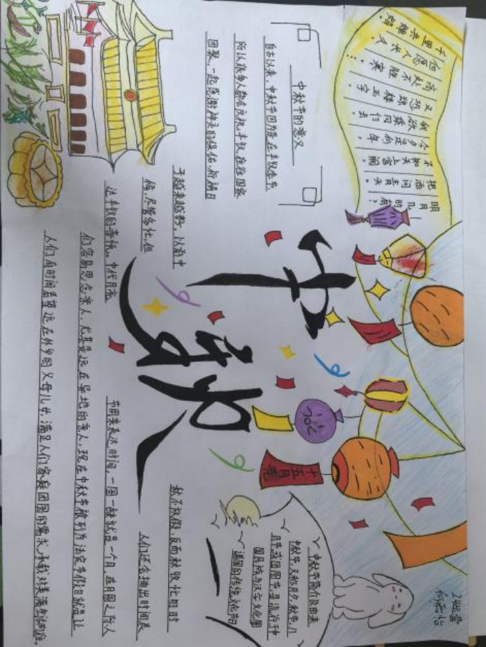 彩筆繪團圓,畫卷展中秋。同學們廣泛收集中秋節(jié)的相關(guān)素材,用心繪制一幅幅中秋主題手抄報。從皎潔的明月、飄香的桂花,到團圓的家宴、歡樂的燈籠,每一幅作品都凝聚著同學們對中秋佳節(jié)的美好祝愿與無限創(chuàng)意,讓傳統(tǒng)文化的藝術(shù)魅力在色彩斑斕中綻放。