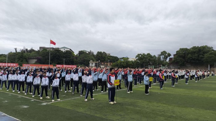 開幕式尾聲,各班級同學帶來精彩的廣播操表演,動作規(guī)范整齊、節(jié)奏協(xié)調統(tǒng)一,完美融合韻律美與力量感,彰顯了班級凝聚力和團隊精神。