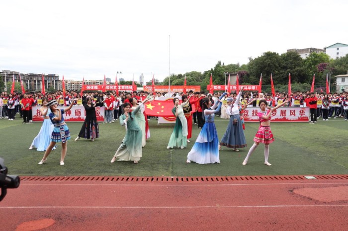 伴隨激昂的進(jìn)行曲,各方陣以颯爽姿態(tài)奔赴賽場(chǎng),啦啦操展示、紅色經(jīng)典朗誦、舞旗表演等創(chuàng)意展演輪番登場(chǎng),每一幀都是福郵學(xué)子的巧思與熱望。