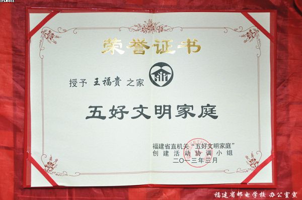 日前,從省教育廳機關(guān)黨委傳來喜訊,經(jīng)過層層推薦,我校王福貴校長的家庭榮獲省直機關(guān)2010—2011年度“五好文明家庭”稱號,成為省直機關(guān)和諧家庭建設(shè)的典型代表。