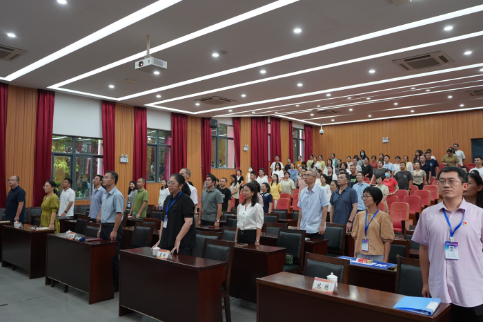 教代會在莊嚴(yán)的國歌聲中拉開帷幕,全體教職工肅立齊唱國歌。