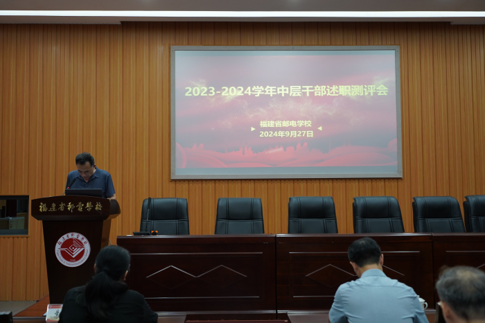 接著,林鵬副校長主持了中層干部述職測評會。會上,各科、部、室負(fù)責(zé)人分別向大會匯報2023-2024學(xué)年工作情況。