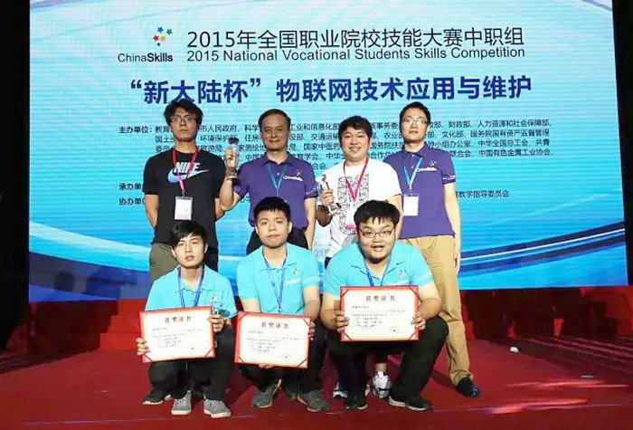 6月18日,由教育部、北京市人民政府、科學技術部、工業(yè)和信息化部等31家單位共同主辦,北京市教育委員會等單位承辦,北京新大陸時代教育科技有限公司、工業(yè)和信息化職業(yè)教育教學指導委員會等單位協(xié)辦的2015年全國職業(yè)院校技能大賽(中職組)“新大陸杯”物聯(lián)網技術應用與維護大賽在北京豐臺區(qū)園博園隆重舉行,來自全國28個省市79支參賽隊的237名選手匯聚一堂、比拼技能。我校代表隊憑借著扎實的功底和穩(wěn)定的發(fā)揮,從近80支參賽隊中脫穎而出,勇奪團體二等獎,再一次展示了我校物聯(lián)網技術應用專業(yè)的教研水平以及我校師生奮發(fā)進取的精神風貌。