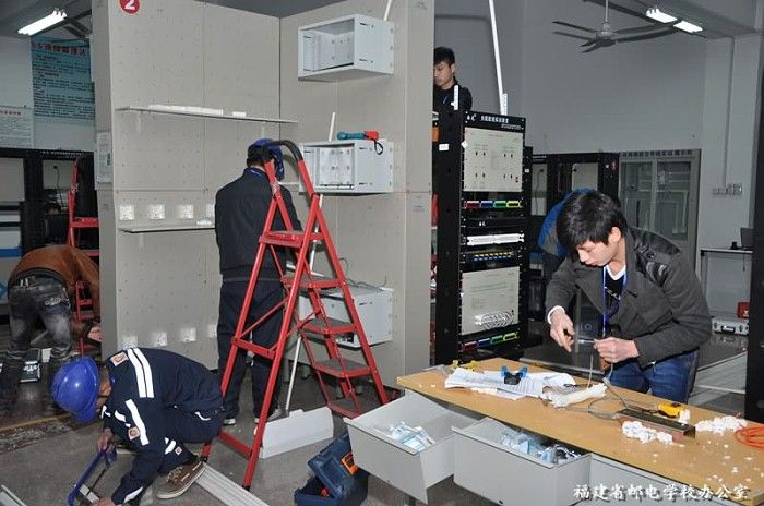2013年福建省職業(yè)院校職業(yè)技能大賽省屬中職學校選拔賽網(wǎng)絡(luò)綜合布線技術(shù)項目于1月15日上午在我校舉行。由通信1107班黃志杰、通信1203班宋振雄、通信1208班陳勇智組成的我校代表隊經(jīng)過3個小時的激烈角逐奪得了第一名的好成績,