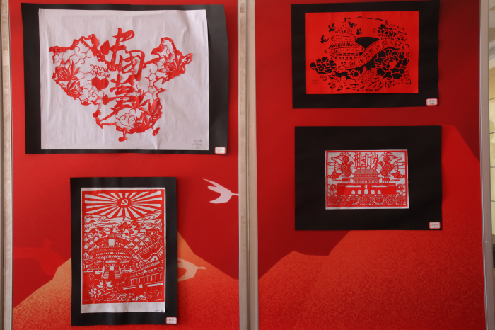 展覽創(chuàng)新設(shè)置剪紙、繪畫、書法、手工四大主題展區(qū)。剪紙藝術(shù)區(qū)以非遺技藝為載體,學(xué)生運(yùn)用折、剪、刻等傳統(tǒng)技法,將“中國(guó)夢(mèng)”主題與鏤空藝術(shù)深度融合,在方寸之間展現(xiàn)非遺文化的現(xiàn)代魅力。繪畫創(chuàng)作區(qū)匯集手抄報(bào)、水彩、油畫等多元形式,既有愛國(guó)精神的細(xì)膩刻畫,也有對(duì)國(guó)家未來發(fā)展的科幻想象。書法展區(qū)墨香四溢,楷書端方、行書飄逸、草書灑脫,傳統(tǒng)詩(shī)詞與現(xiàn)代感悟在宣紙上交相輝映。手工藝品區(qū)則通過精巧的創(chuàng)意制作,將生活美學(xué)與工匠精神熔鑄于方寸作品之中。