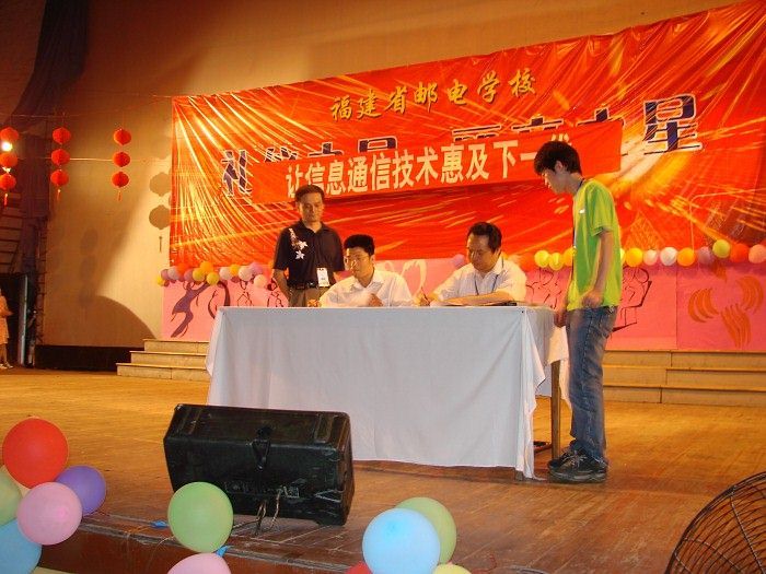 技能競賽開幕式由劉蘇軍副校長主持,在開幕式,不僅進(jìn)行了福建省通信管理局、福建省通信學(xué)會向?qū)W校共同贈書3000冊的儀式,而且還進(jìn)行了福建省郵電工程公司、福建富通信息產(chǎn)業(yè)公司、福建電信技術(shù)發(fā)展有限公司與學(xué)校校企合作簽約儀式。