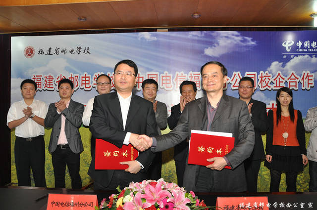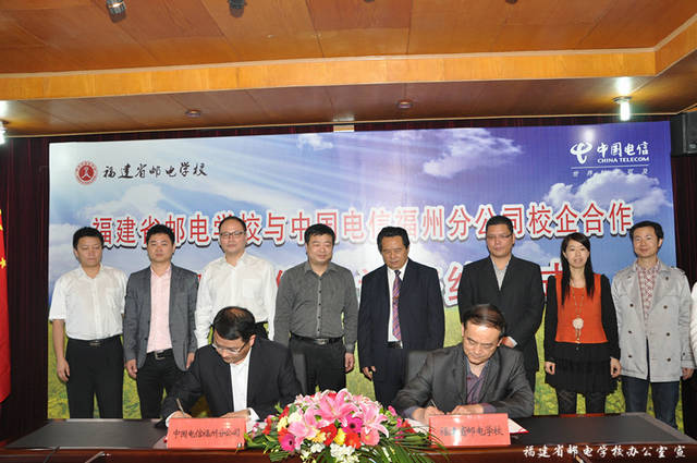 據(jù)了解,我校將在福州電信分公司掛牌設(shè)立校外實(shí)訓(xùn)和就業(yè)基地,福州電信分公司將在我校掛牌設(shè)立員工培訓(xùn)基地,校企雙方將從2013級(jí)新生開始共建“電信合作班”,合作建設(shè)校內(nèi)實(shí)訓(xùn)場(chǎng)所,學(xué)校可派遣優(yōu)秀教師和業(yè)務(wù)骨干參與企業(yè)科研項(xiàng)目開發(fā)、技術(shù)援助和學(xué)術(shù)研討,企業(yè)可派遣中高層管理人員、技術(shù)骨干擔(dān)任學(xué)校客座教授、專業(yè)帶頭人或兼職教師,參與學(xué)校人才培養(yǎng)、科技開發(fā)、教學(xué)改革、教材編寫等工作。