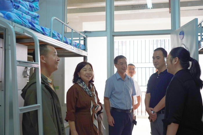 會(huì)后,我校黨委書記包曉暉,黨委副書記、校長(zhǎng)蘇嶸,副校長(zhǎng)陳霓、林鵬陪同來賓一行人參觀了學(xué)生公寓樓以及教學(xué)實(shí)訓(xùn)場(chǎng)所。