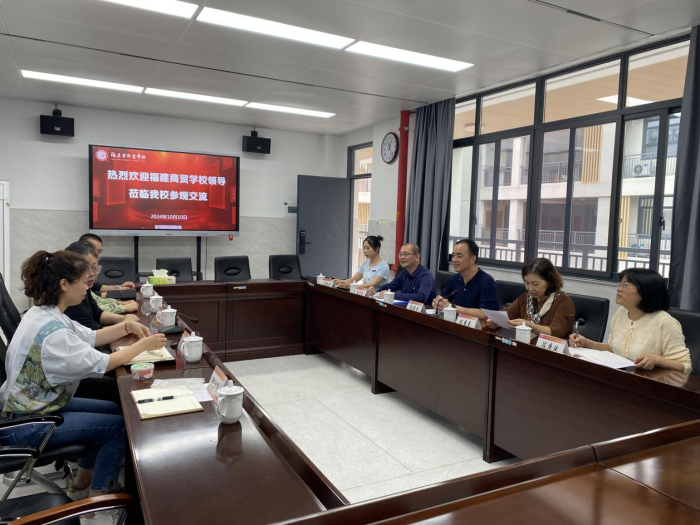 10月10日,福建商貿(mào)學(xué)校黨委書記蘭享華,校長郭曙光,副校長陳秀美,紀(jì)委書記、副校長黃登龍帶領(lǐng)該校相關(guān)部門人員一行7人,來我校參觀交流。我校黨委副書記、校長蘇嶸,副校長陳霓出席交流會,教務(wù)科負責(zé)人及業(yè)務(wù)經(jīng)辦人員參會。
