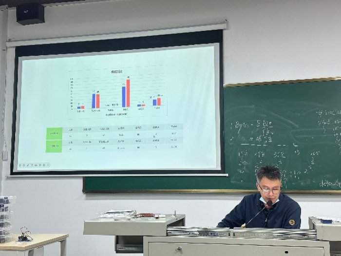 會上陳銘、白鶴、邵奎丹、王豐四位學(xué)考備課小組組長分別對《程序設(shè)計》《數(shù)字電子技術(shù)基礎(chǔ)》《電工技術(shù)基礎(chǔ)與技能》《Visual Basic程序設(shè)計》四門課程進(jìn)行成績分析發(fā)言,主要對成績分析對比、目前課程存在的問題以及后期教學(xué)改進(jìn)辦法進(jìn)行交流,通過橫向縱向?qū)Ρ攘私鈱W(xué)生的學(xué)習(xí)情況,就各學(xué)科的試卷內(nèi)容與出題難度進(jìn)行研討,從試題結(jié)構(gòu)、知識點覆蓋面等對試卷進(jìn)行深度分析。最后,馮力主任總結(jié)發(fā)言,首先他肯定了老師們的教學(xué)能力,其次鼓勵老師們積極探索學(xué)考課程的模式,勤研討、不放松,端正學(xué)生學(xué)習(xí)態(tài)度,提高課堂學(xué)習(xí)效率,查缺補(bǔ)漏,努力提升教學(xué)質(zhì)量。