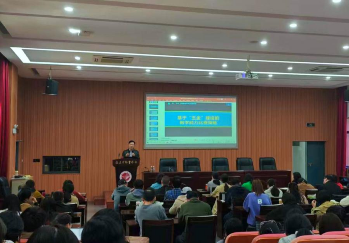 陳主任結(jié)合往屆比賽案例,深入剖析了參賽作品中存在的共性問(wèn)題,提出了具體的改進(jìn)建議,強(qiáng)調(diào)教案設(shè)計(jì)需兼具規(guī)范性與創(chuàng)新性,充分體現(xiàn)教學(xué)設(shè)計(jì)的科學(xué)性與藝術(shù)性,并分享了課程重構(gòu)與學(xué)情分析的方法與技巧,幫助教師們更好地提煉教學(xué)成果,展示教學(xué)成效。他的實(shí)際案例講解,生動(dòng)詮釋了“五金”建設(shè)在教學(xué)能力比賽中的應(yīng)用,為即將參賽教師提供了寶貴的實(shí)戰(zhàn)經(jīng)驗(yàn)。