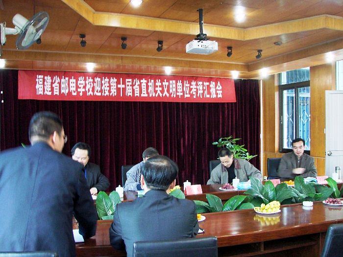 4月26日,福建省第十屆省直機(jī)關(guān)文明單位考評組一行3人對我校創(chuàng)建文明單位工作進(jìn)行考核評估驗(yàn)收。學(xué)校領(lǐng)導(dǎo)班子、全體中層干部參加了考評會。