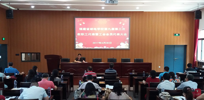 會議在莊嚴(yán)的國歌聲中拉開序幕。劉孔恩校長作了校長工作報(bào)告,校工會主席王錦副校長作了工會工作報(bào)告。與會代表聽取審議了2016年學(xué)校財(cái)務(wù)工作報(bào)告及2017年度學(xué)校財(cái)務(wù)預(yù)算草案、2016年工會經(jīng)費(fèi)收支使用情況報(bào)告及2017年工會經(jīng)費(fèi)預(yù)算草案,討論通過了《福建省郵電學(xué)校師資隊(duì)伍建設(shè)規(guī)劃(2016-2020)》等文件。代表們還對工會建家、工會主席、副主席工作進(jìn)行了民主測評。
