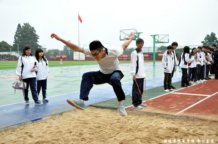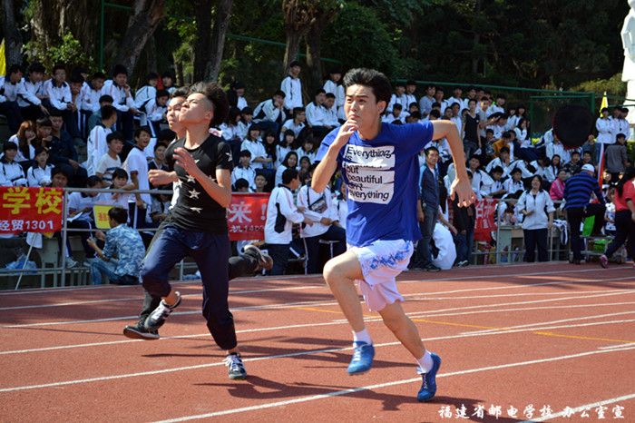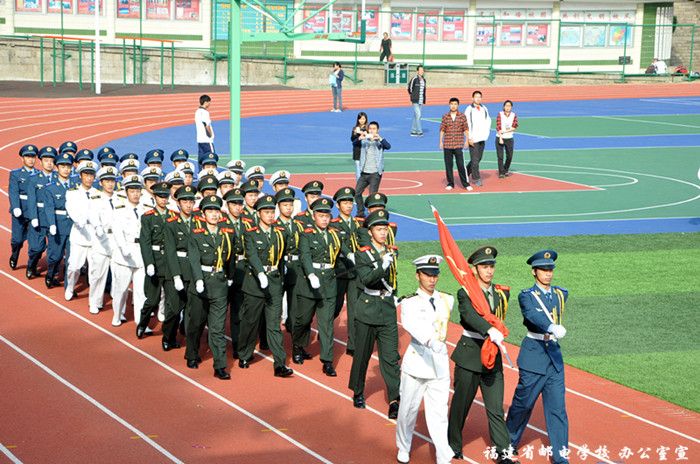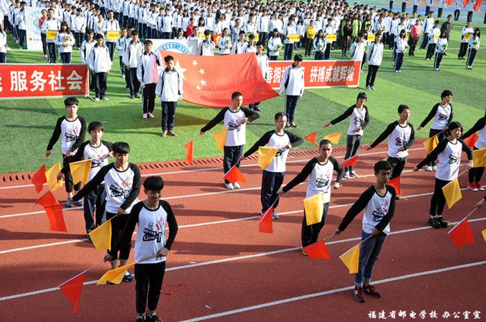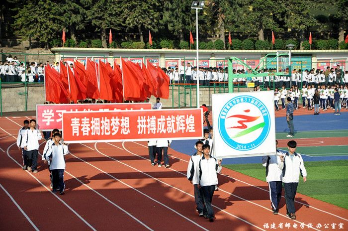 在隆重的升旗儀式之后,劉孔恩校長代表學(xué)校黨政領(lǐng)導(dǎo)班子致開幕詞。他首先代表學(xué)校對本屆校運會的順利召開表示熱烈的祝賀,向為籌備本屆運動會付出辛勤勞動的全體工作人員表示衷心的感謝和親切的問候!劉校長指出,社會經(jīng)濟的不斷發(fā)展,要求技能型人才不但要有較高的專業(yè)知識、實踐能力和創(chuàng)新精神,還要有健全的人格、健康的心理、健壯的身體。一年一度的田徑運動會,是我校傳統(tǒng)的校園文化生活項目。它既為廣大郵校學(xué)子提供了一個展示青春風(fēng)采挑戰(zhàn)潛能極限的實踐舞臺,也是對我校體育工作水平與質(zhì)量的一次綜合展演,有力地促進了我們學(xué)校的精神文明建設(shè),提升了校園文化品位。劉校長希望,全體師生能利用我校良好的體育鍛煉資源,激發(fā)鍛煉身體的積極性,放下手機,放下電腦,走出房間,到這嶄新的運動場,堅持每天鍛煉一小時,為更好地學(xué)習(xí)、工作和生活奠定堅實的身體基礎(chǔ),充分展示我們郵校團結(jié)進取、奮發(fā)向上的精神風(fēng)貌,大力弘揚“更快、更高、更強”的奧林匹克精神和“愛國愛鄉(xiāng)、海納百川、樂善好施、敢拼會贏”的福建精神,共同奏響實現(xiàn)郵?缭桨l(fā)展的壯美樂章!