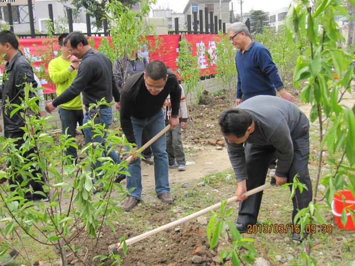 當(dāng)天,在則徐大道368弄住宅區(qū)綠地,我校教職工滿懷干勁,每三到四人分成一組,協(xié)同作戰(zhàn)。在歡聲笑語中,大家不停地?fù)]動著鐵鎬與鋤頭,在則徐大道368弄的廢棄空地上種下了一棵棵樹苗,植樹現(xiàn)場呈現(xiàn)出一片熱火朝天的景象。經(jīng)統(tǒng)計,我校教職工在此次植樹活動共栽植觀賞用的碧桃和桂花樹苗近百棵。