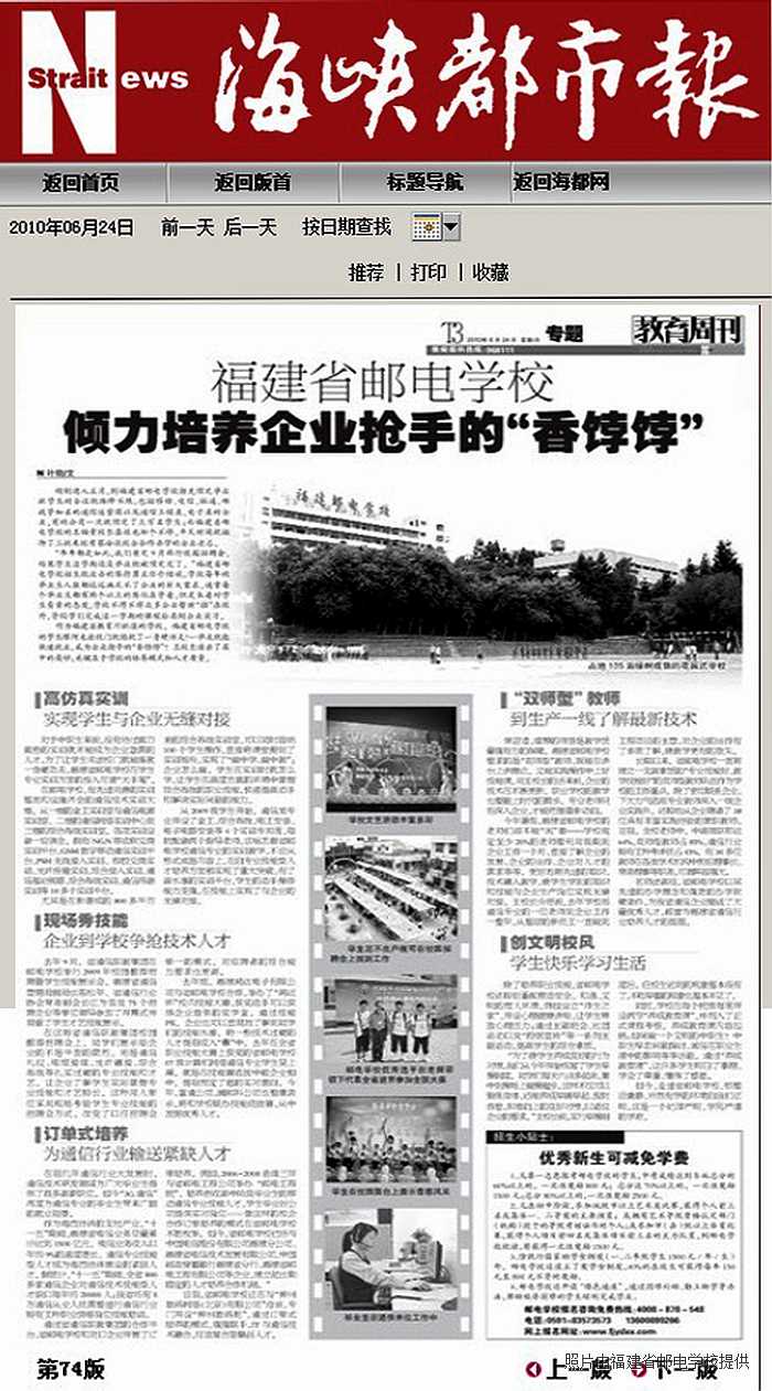 《海峽都市報(bào)》教育周刊整版報(bào)道郵電學(xué)校辦學(xué)優(yōu)勢
