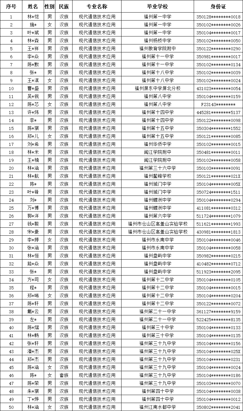 您現(xiàn)在的位置: 首頁 > 學(xué)校信息 > 通知公告通知公告 福建省郵電學(xué)校2024年福州市三年專錄取名單 發(fā)布時(shí)間:2024-07-27 //echo ;?> 來源:招生辦公室點(diǎn)擊: 招生熱線:0591-83573573 學(xué)校地址:福州市倉山區(qū)上渡路李厝山60號 上一篇:福建省郵電學(xué)校2024年龍巖市三年專錄取名單 下一篇:家校齊心 共育花開——我校召開2024年秋季學(xué)期新生家長會