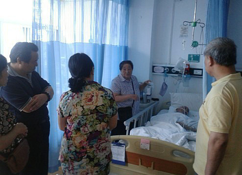王福貴校長(zhǎng)和王錦副校長(zhǎng)仔細(xì)了解湯老的病情,表示親切慰問(wèn)。湯老的家屬對(duì)學(xué)校的關(guān)心表示感謝。