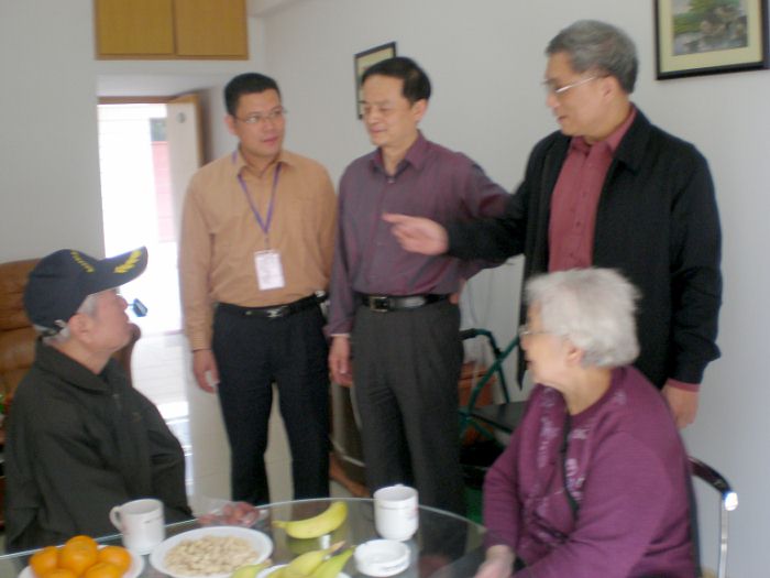 退休高齡老同志陳淑芬(90歲)劉欽階(87歲)兩位老教師已退休多年,很想能夠來到學(xué)校看看校園的規(guī)模,了解學(xué)校的發(fā)展,但由于行動不便都沒有機會實現(xiàn)自己的愿望;今年春節(jié)校領(lǐng)導(dǎo)、校工會、校人事和辦公室組成的慰問組前往慰問老同志時,他們提出了這一愿望后校領(lǐng)導(dǎo)和工會領(lǐng)導(dǎo)都很重視, 終于在4月1日這天陽光明媚的日子里,校工會組織人員做了周密的安排,專程到馬尾老人公寓和對湖宿舍將兩位老教師接到學(xué)校,實現(xiàn)了老人家的心愿。