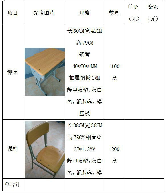 備注:1、課桌椅最高控制價(jià)為人民幣177500元,報(bào)價(jià)超過(guò)控制價(jià)的為廢標(biāo)。