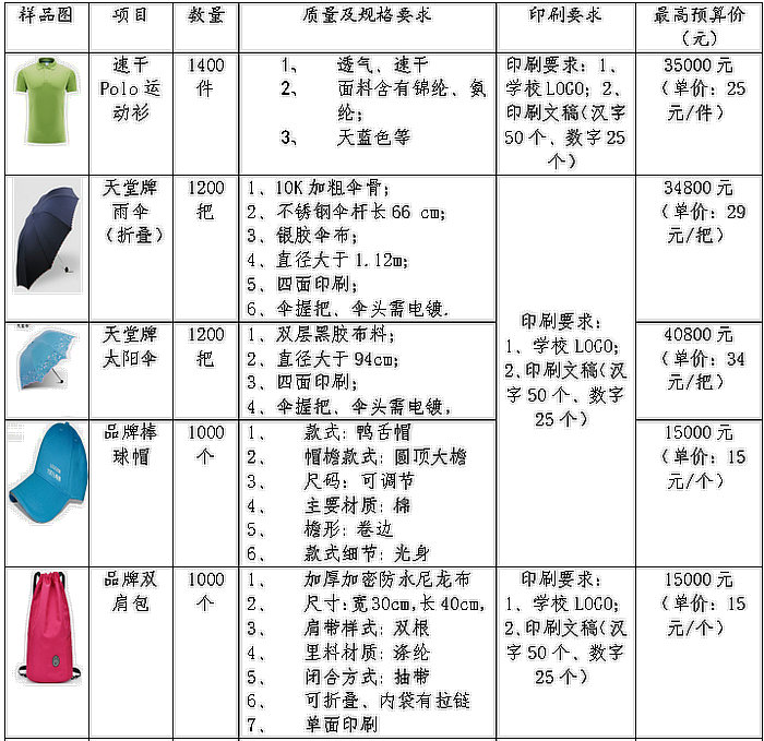 5)每個(gè)項(xiàng)目提供一個(gè)樣品,供評(píng)標(biāo)用。