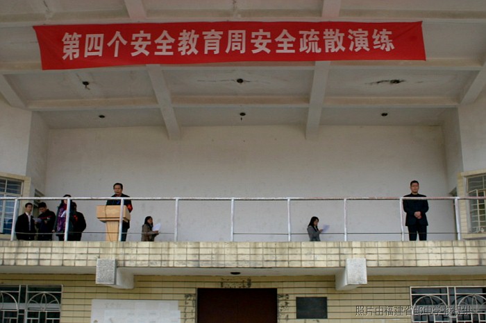 - 為加強學(xué)校安全工作,進一步提高全體師生在突發(fā)危險事件中的自救自護能力,2011年3月30日上午,我校利用課間操時間組織全校同學(xué)進行緊急疏散應(yīng)急演練。演練由學(xué)生科容月玲科長主持,王福貴校長,謝福仁副校長等校領(lǐng)導(dǎo)親臨現(xiàn)場指揮。