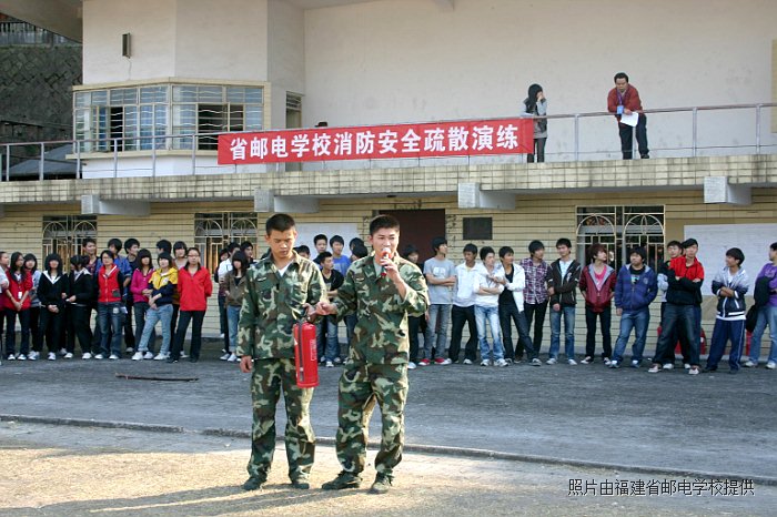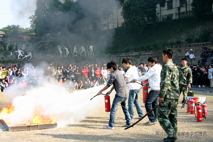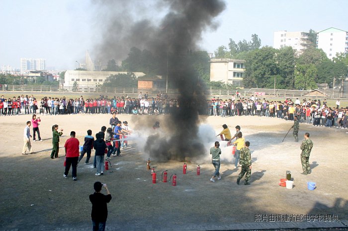 2010年11月10日下午,在全體班主任老師和學生科老師的帶領和組織下,進行了消防安全演練,各專業(yè)科老師也積極投身到了學生緊急疏散的疏導工作中。我校全體師生在倉山消防大隊三中隊官兵的指導下進行了一場火災逃生和滅火實戰(zhàn)演練。