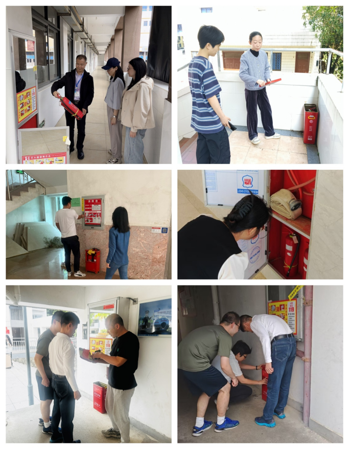 檢查組先后深入教學樓、實訓樓、學生宿舍、食堂、圖書館等重點區(qū)域,針對消防安全、用電安全、設(shè)施設(shè)備安全等方面進行了詳細檢查。在教學樓和實訓樓,檢查人員認真查看了消防設(shè)施是否完好有效、疏散通道是否暢通無阻,以及電器設(shè)備、實驗器材的使用和管理情況。