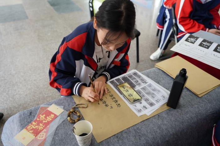 各教學(xué)部對24個展示項目全部進行視頻拍攝,并在學(xué)校新實訓(xùn)樓LED屏、1號教學(xué)部LED屏、信息實訓(xùn)基地一樓大廳進行輪播。信息技術(shù)實訓(xùn)基地一樓大廳現(xiàn)場展示了優(yōu)秀學(xué)生的書法作品、英語手抄報、德育手抄報、剪紙作品、繪畫作品、手機拆裝作品及物聯(lián)網(wǎng)創(chuàng)意類作品等。計算機專業(yè)教學(xué)部組織了“感藝術(shù)之美,拓文化初心”文創(chuàng)制作和藝術(shù)剪紙體驗活動,豐富了師生精神文化生活,并感知藝術(shù)之美;經(jīng)濟管理教學(xué)部組織“手動液壓托盤搬運車”體驗活動,讓學(xué)生掌握手動搬運車使用技能,并體驗到勞動的快樂;通信技術(shù)專業(yè)教學(xué)部組織了“電子元器件焊接”體驗活動,讓其它專業(yè)學(xué)生初步體驗電烙鐵使用,了解電子元器件焊接技巧,擴充了知識面;公共課程教學(xué)部組織了毛筆書法體驗活動,讓學(xué)生感受中華優(yōu)秀傳統(tǒng)文化魅力,并由林志團老師和21金融五專班林佳同學(xué)為同學(xué)們現(xiàn)場寫書簽,希望給即將參加學(xué)考的同學(xué)們帶來好運。此次現(xiàn)場體驗活動,頗受師生歡迎,很多項目排滿了長隊,成為校園文化生活的一道亮麗的風(fēng)景線。